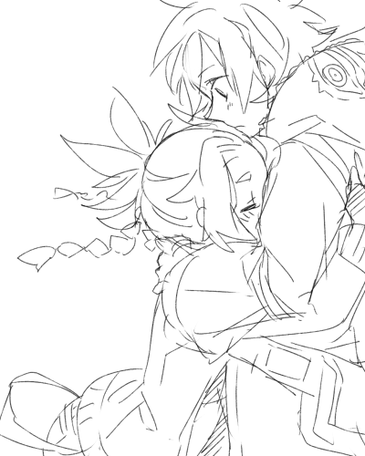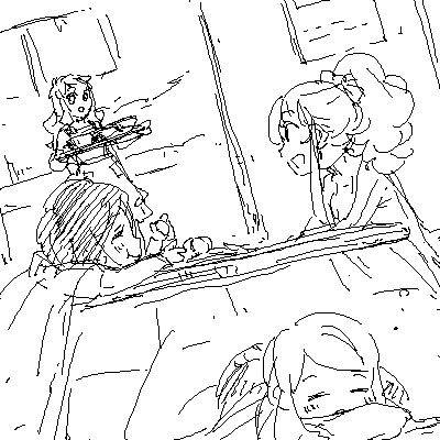 赤でこちゃんのみつあみをなるべく太めに描きたい。