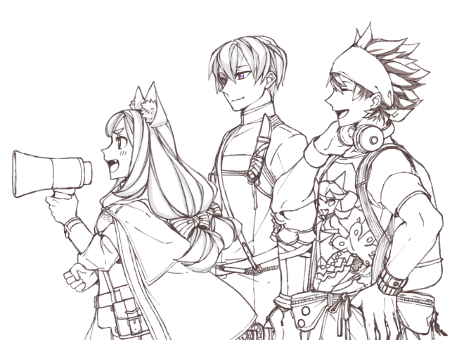 名前は苗字みたいな下の名前繋がりで、アキヨシ、タツミ(バンダナ)、シバ(ルシェ子)です。